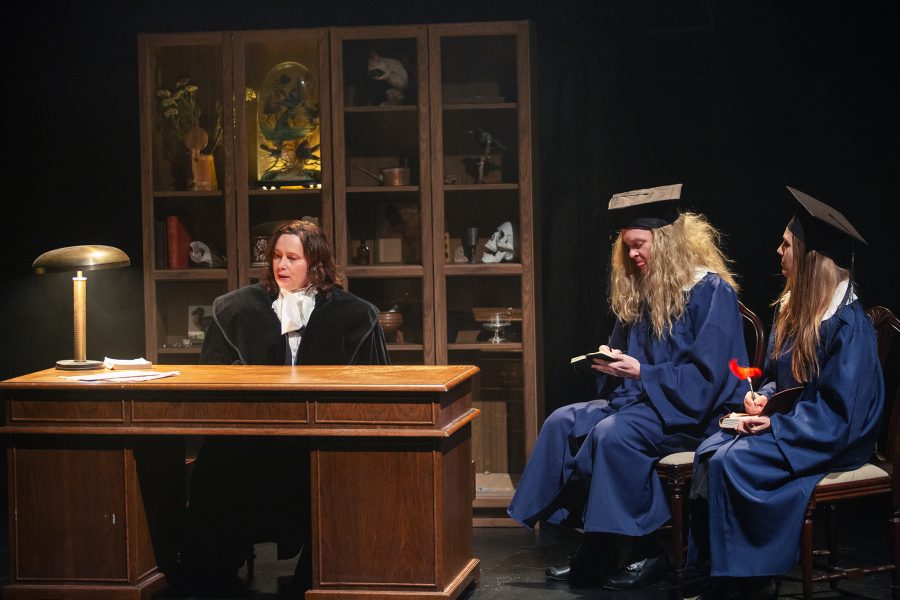 ”Ensemblens tvära kast mellan historiska figurer, från Platon till Drottning Kristina, kröns av Åsa Berglunds Cowburn och Erik Stenberg utsökta kostymer.”